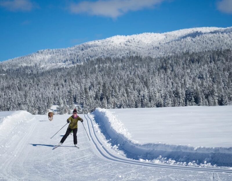 The community also includes an 18-hole golf course with a clubhouse restaurant and over 15 miles of public trails, including groomed Nordic skiing trails.