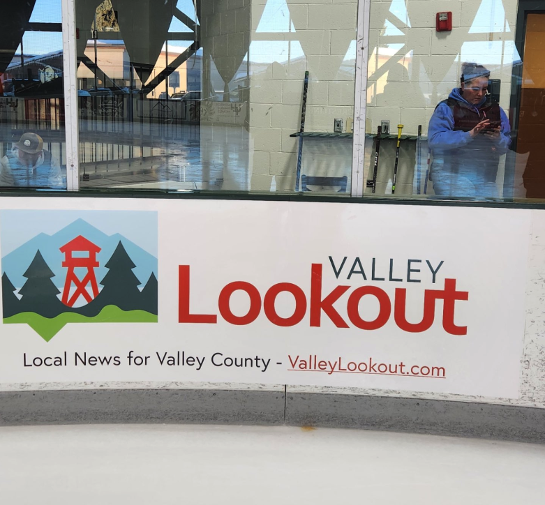 Our “dasher” ad on the ice at the Manchester Ice and Events Center in McCall. Photo: Courtesy Manchester Ice and Events Center