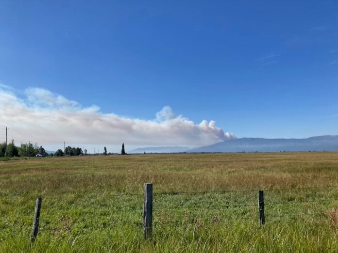 The Rock Fire as seen from the Donnelly Boat Docks on Aug. 14, 2025. Photo: Drew Dodson/Valley Lookout
