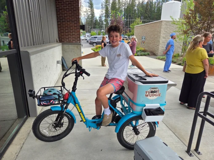 Fudgie Wudgie is a bicycle-powered, mobile ice cream stand run by a 14-year-old entrepreneur from McCall. The bike is a bright blue trike that has a 100-quart cooler on the back, carrying the ice cream and goodies.