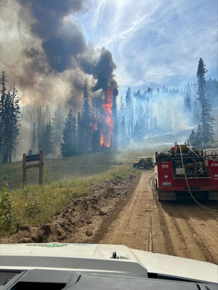 “We can get lines around it, but then there’s a chance of those trees torching out,” he said. “There’s still a lot of work to do even when we have line around the fire.”