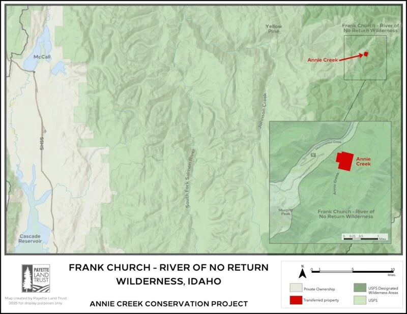 The newly minted wilderness, known by the land trust as the Annie Creek property, is now within the Payette National Forest, one of five national forests that includes portions of The Frank’s 2.3 million acres. It also becomes part of Valley County’s 2.15-million-acre public land inventory.